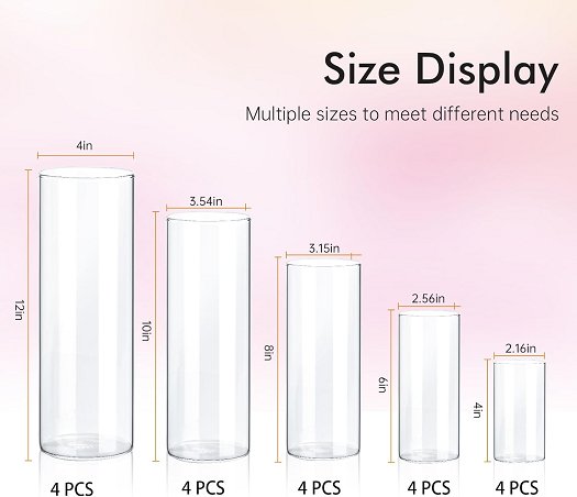 20PC Fgail Glass Vases for Centerpieces - 4"/6"/8"10"/12" - CLEAR