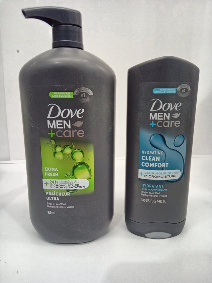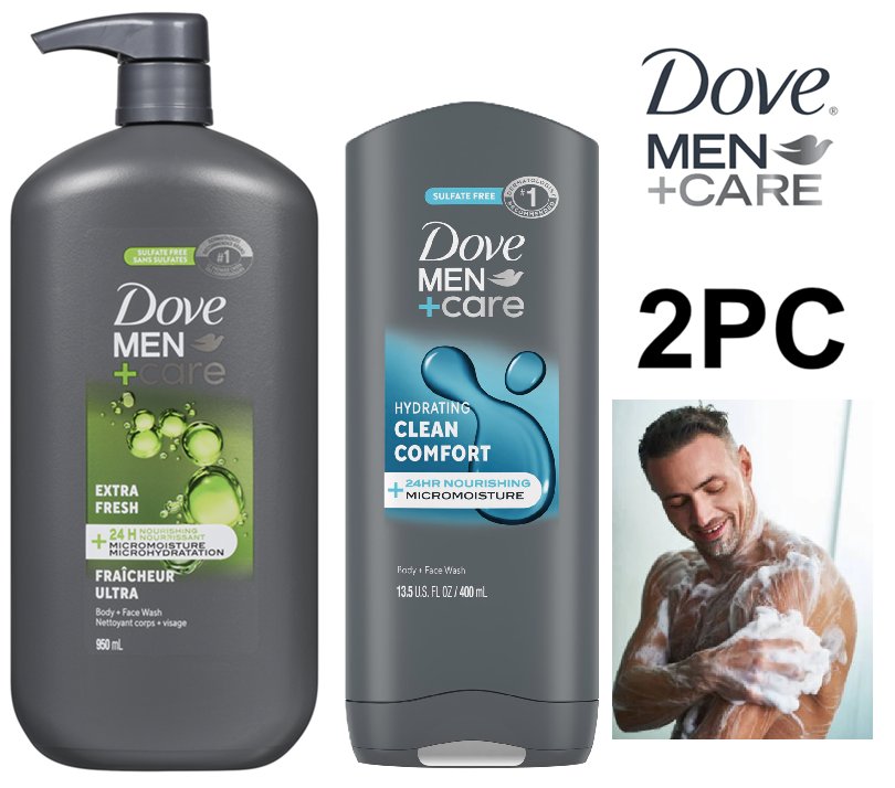 2PC DOVE MEN + CARE 24HR NOURISHING face + body wash- extra fresh/ clean comfort- 950ml/ 400ml
