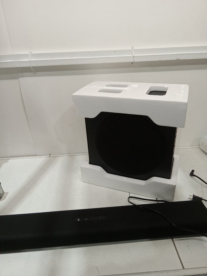 Missing the remote and one of the power cords. Can only test the subwoofer for power as it will not connect without power for the bar.