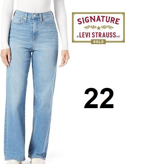 WOMENS LEVIS SIGNATURE GOLD HIGH-RISE LOOSE FIT STRAIGHT LEG JEANS - SIZE 22 - light blue