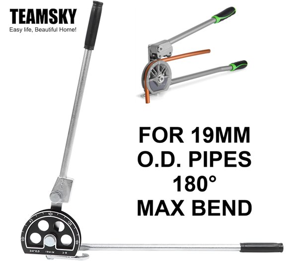 TeamSky 180° Plumbing Tube Pipe Bender Tool For Copper And Aluminum - For 19mm Outer Diameter Pipes 180° Max Bend - Silver/Black (Model: CT-364-12_
