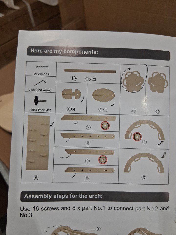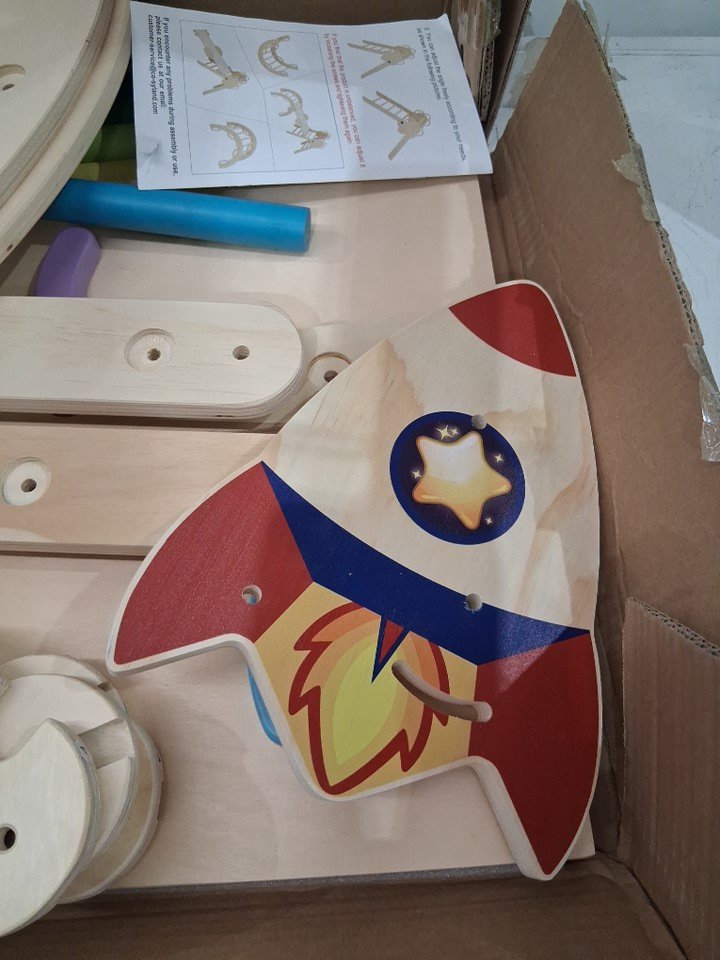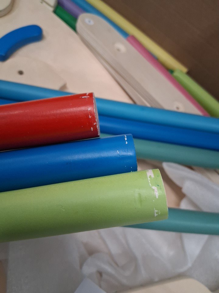 Missing two holder pieces & 3 poles, some scuffs/marker staining from previous use.