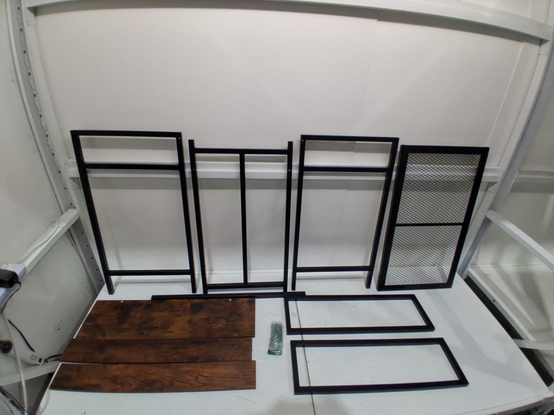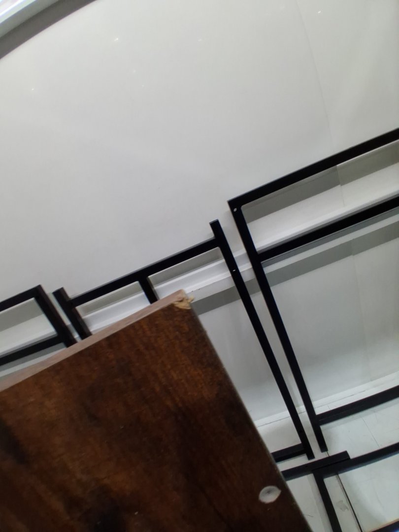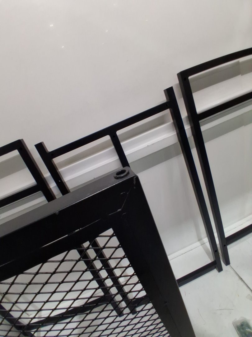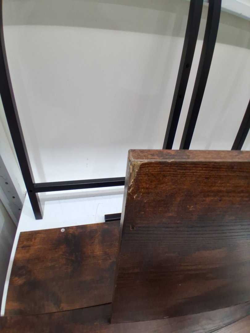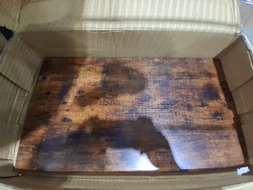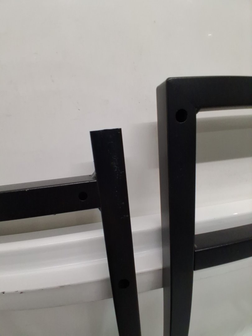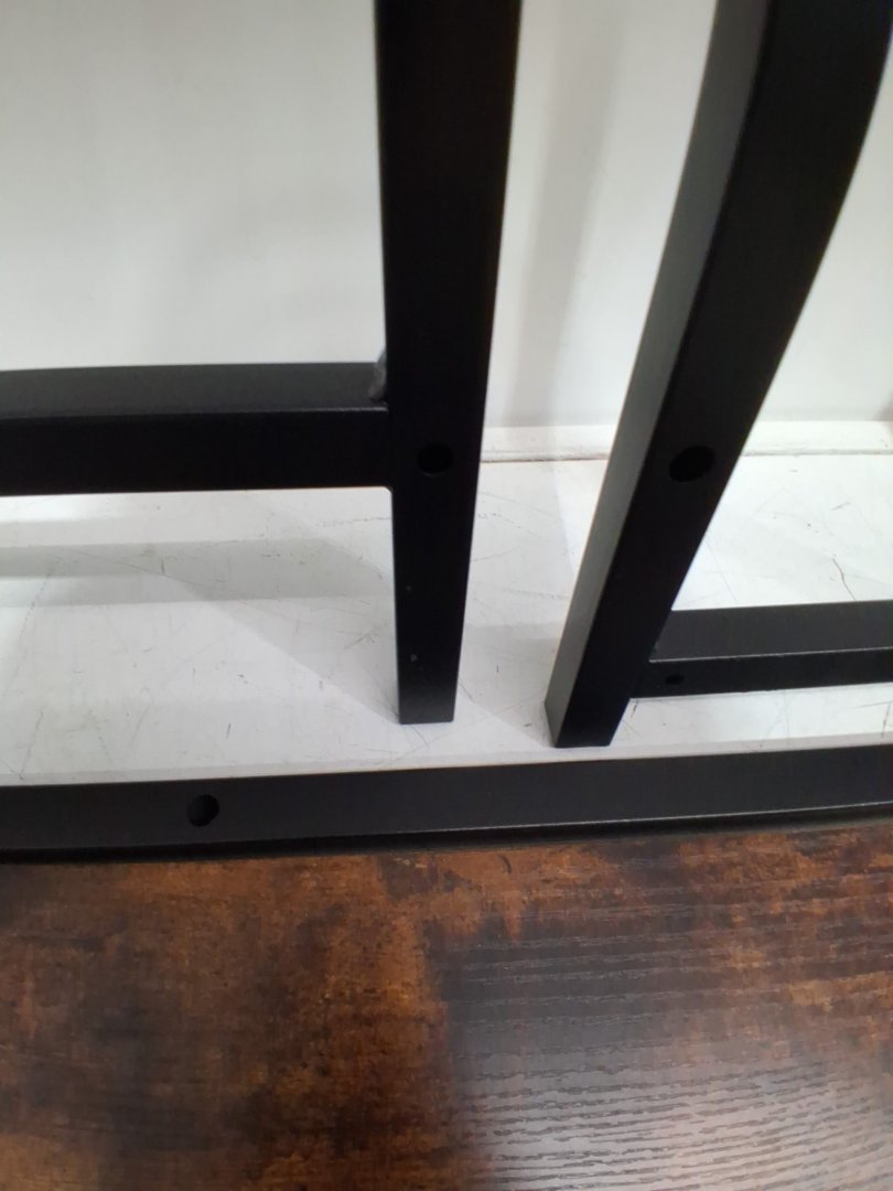 Some light scuffs/scratches n metal frame from shipping. Wooden tabletop has some chips out of the edges/corners. See photos