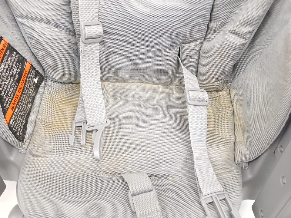 This item is very dirty, has scuffs, has a smell, and the seat is stained. This item needs to be cleaned before use.