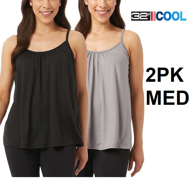 2PK WOMEN'S 32 DEGREES cool CAMI tanks tops WITH BUILT-IN BRA - medium - BLACK/GREY