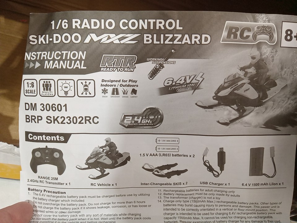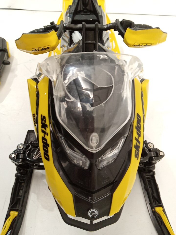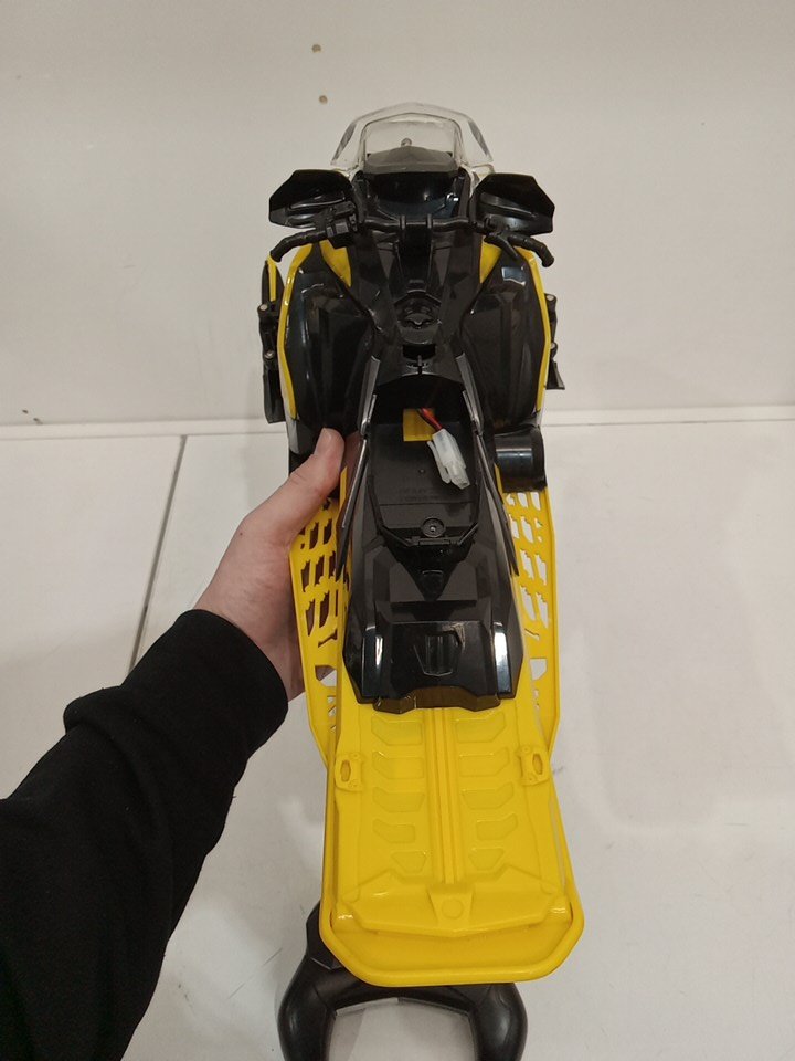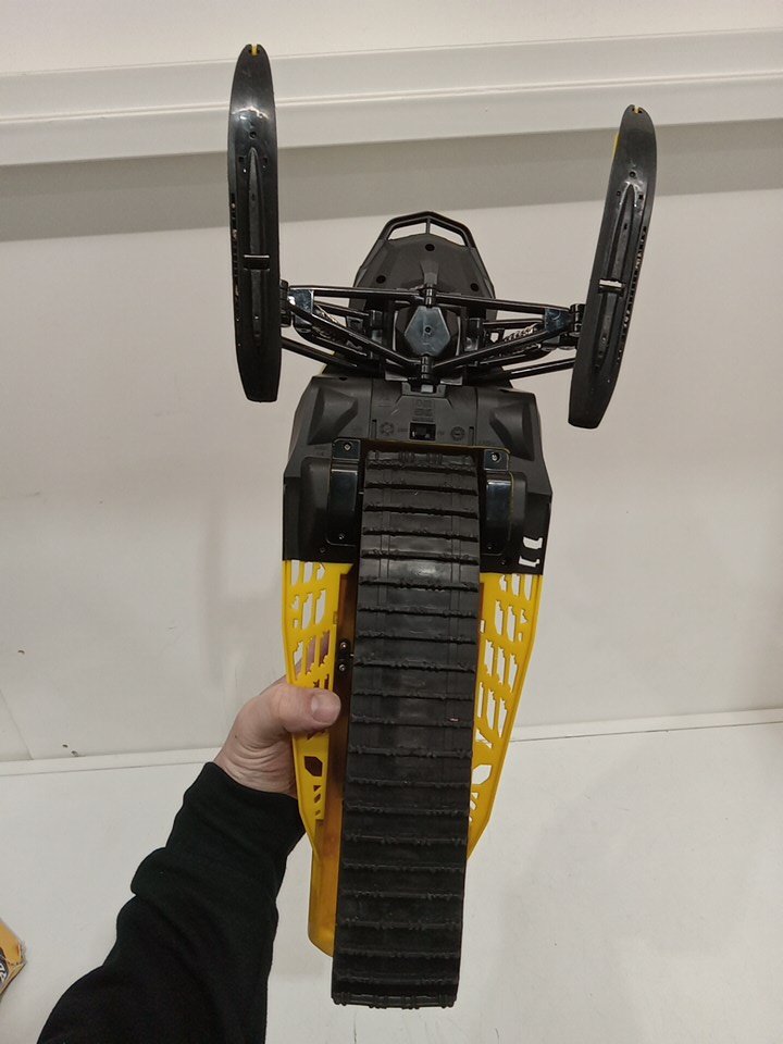 The item shows signs of being previously used prior to being returned. The battery cover(seat), the figure, the battery, the usb charger and one of the inter-changeable skis are missing. The front plastic window is cracked/has a hole in it. See attached photos.