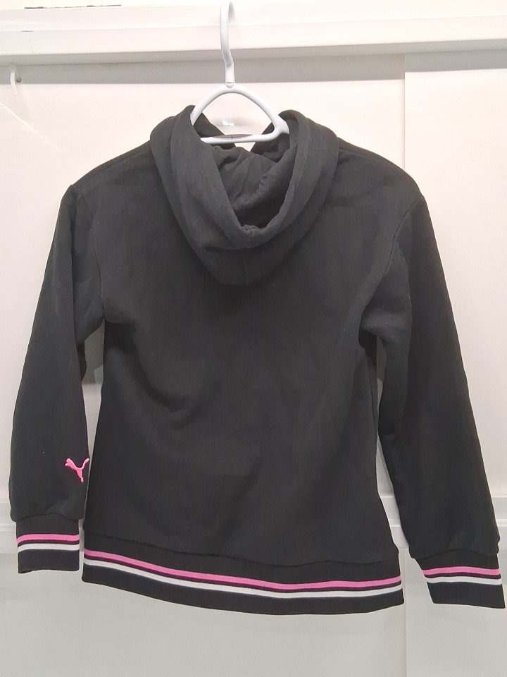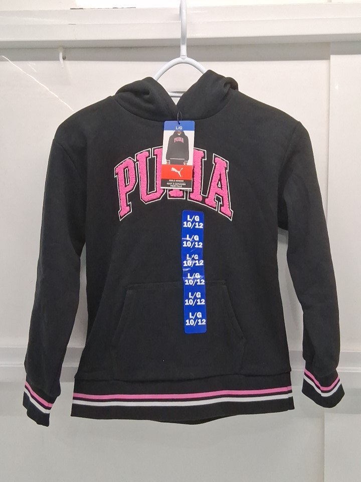 KIDS PUMA logo sweater pull-over hoodie - large, 10/12 - black/pink (style: 3513000)