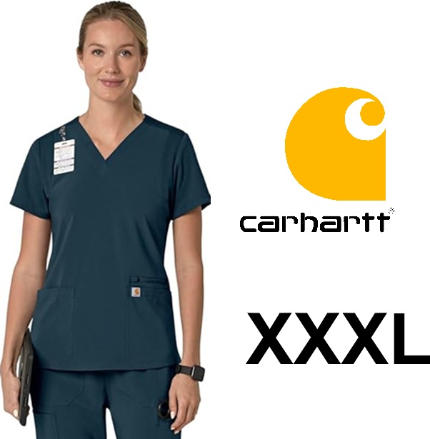 Women's Carhartt Force Cross-Flex Flex Panel V-Neck Scrub Top - XXXL - navy (style: C13210)