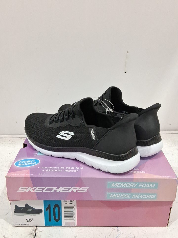 WOMENS SKECHERS MEMORY FOAM SNEAKERS - SIZE 10 - BLACK /WHITE ( STYLE:6633510)
