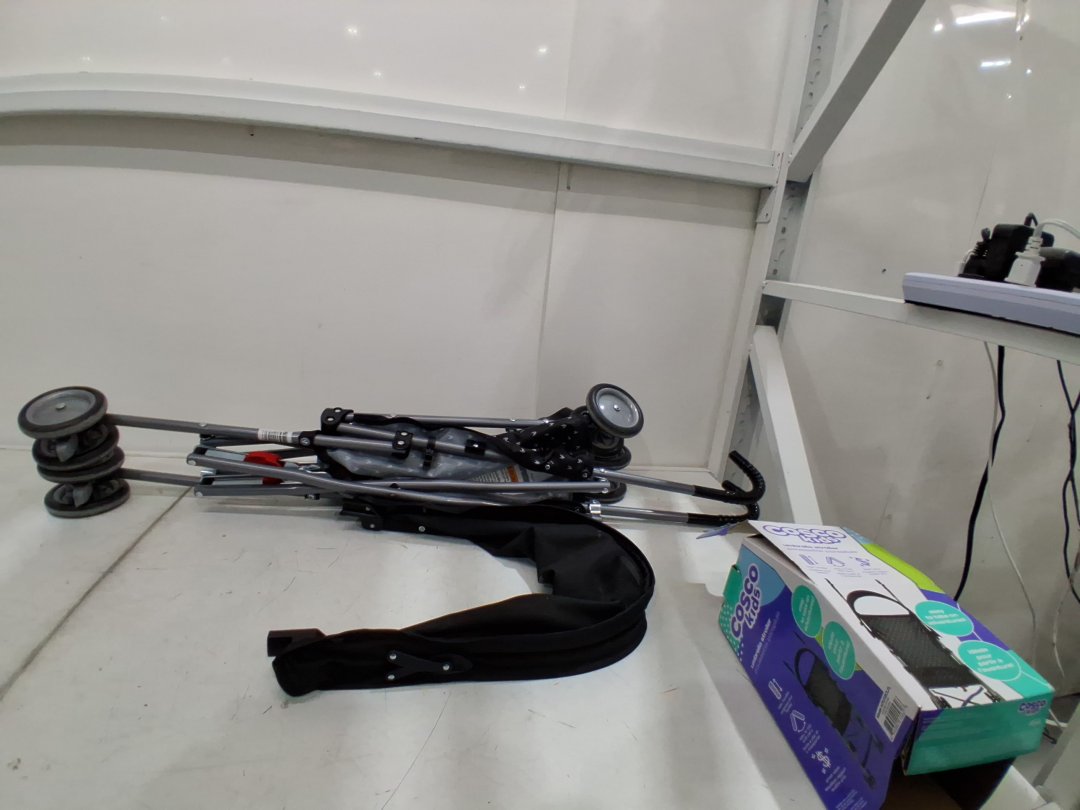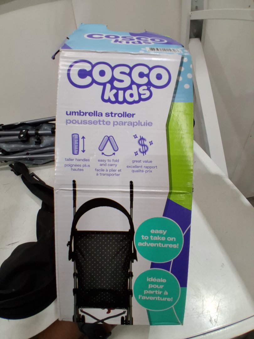 Item has a stain on the umbrella and debris on the wheels, indicating previous use. See photos for details.