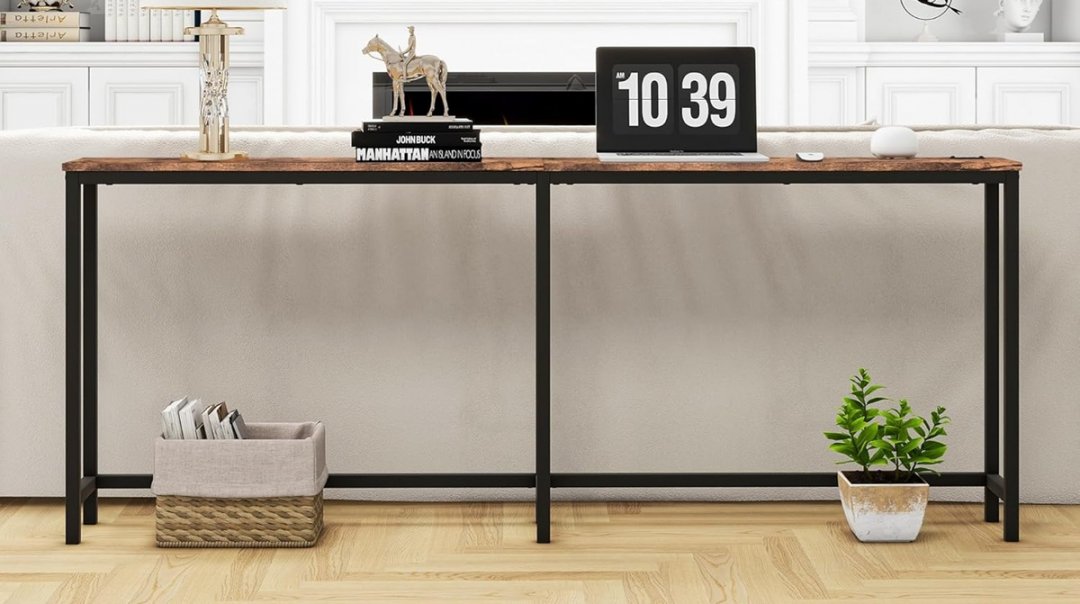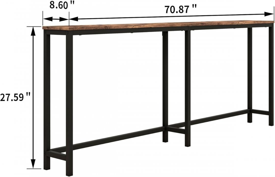 HOMERECOMMEND Skinny Console Table with Power Outlet Charging Station - 70.9" x 8.6" x 27.6 - Rustic Brown (Model: 738B(PC)-BK-RB)