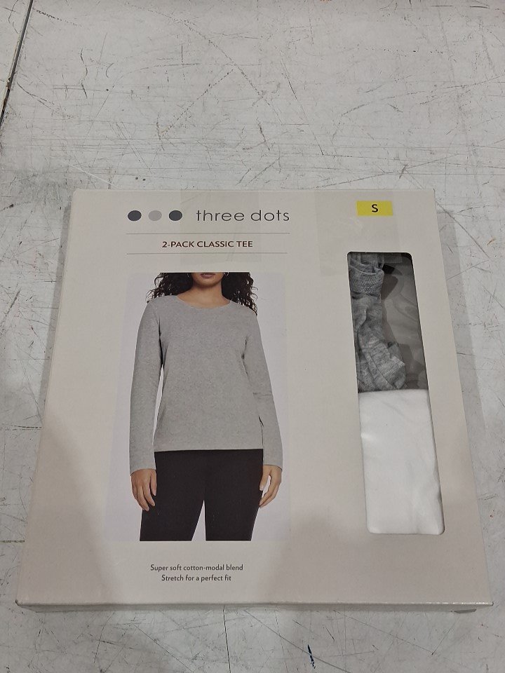 2pk women's Three Dots Crew Top - small - WHITE/GREY (style:492051)