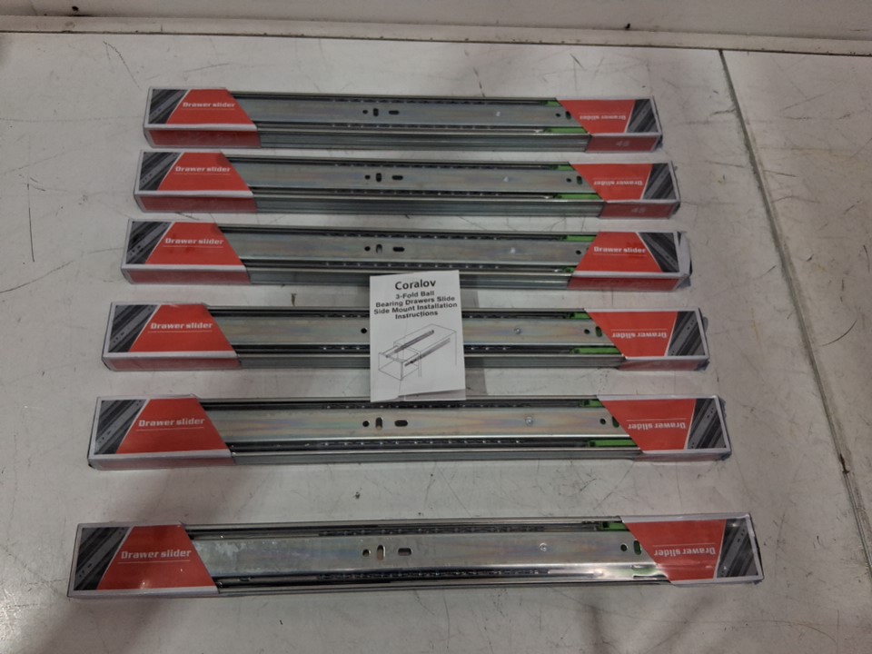 6pk coralov soft close full extension side mounted drawer slides - 18" - silver (model: con-slides3)