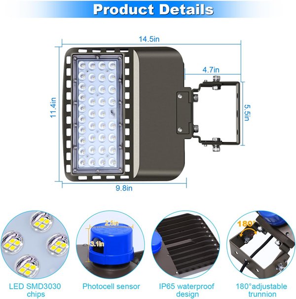 BIRITALO WATERPROOF LED Commercial Dusk to Dawn Flood Lights - 150W 5000K - GREY/BLUE (MODEL: XL-LDO1200-65-08)