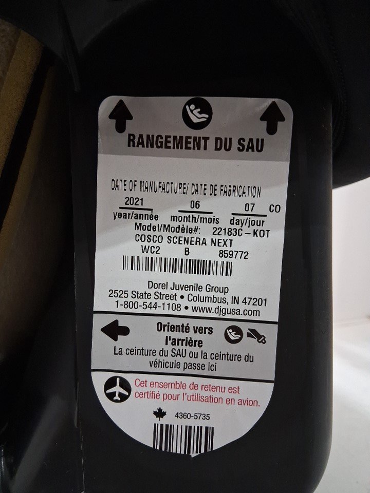 wear on car seat liner, and some minor marks on fabric.
