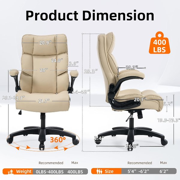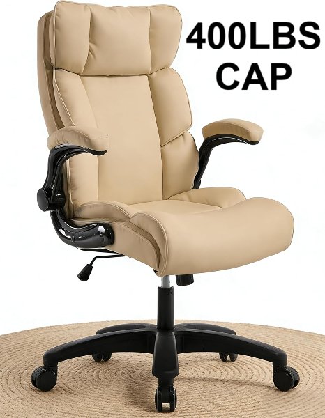 voonmiu ergonomic office chair wide seat reclining gaming/desk chair with lumbar support & thickened armrest - 400lb max - BEIGE