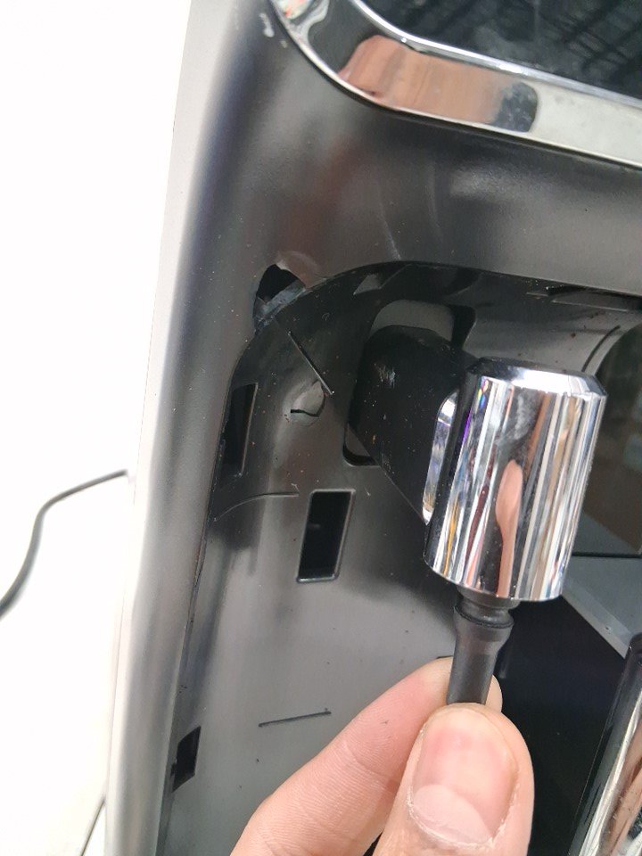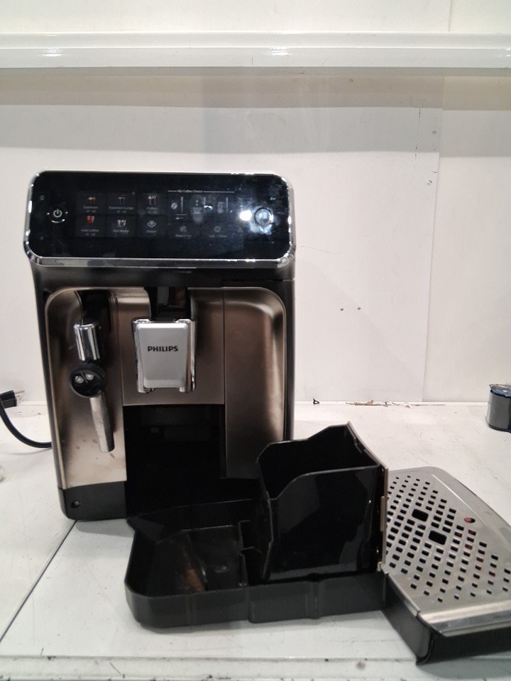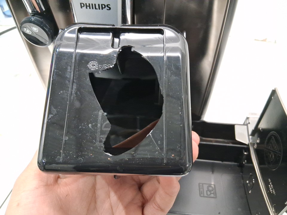 + The bean disposal cup is cracked/broken + + The frother attachment has snapped off the frame and the frame has cracked/broken plastic on it + + Tested for basic power only +