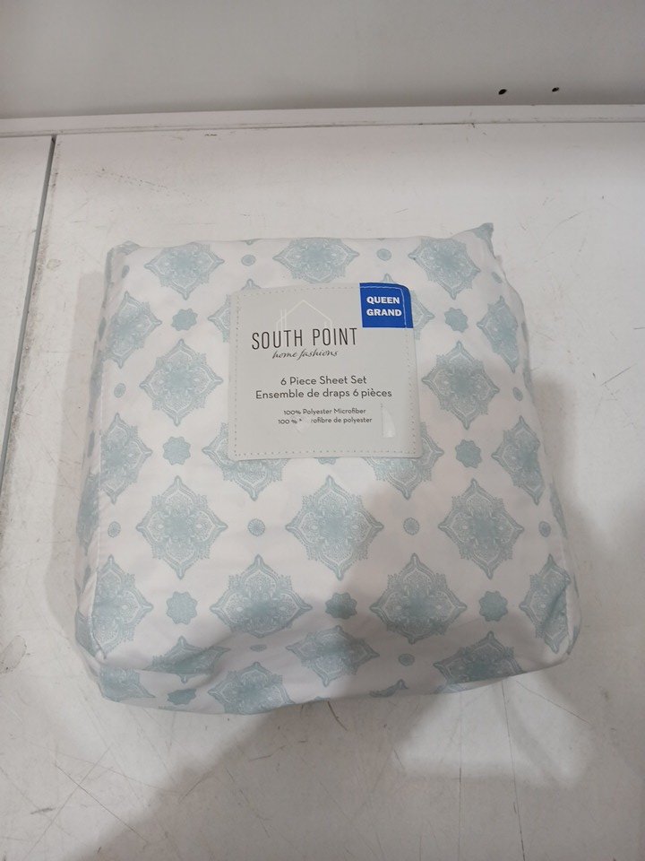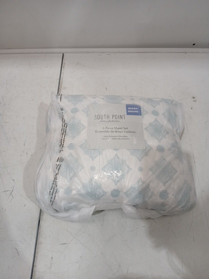 6pc South Point Home PRINTED MICROFIBer sheet set - queen - BOMBAY MEDALLION in blue/white (style: 1703334)