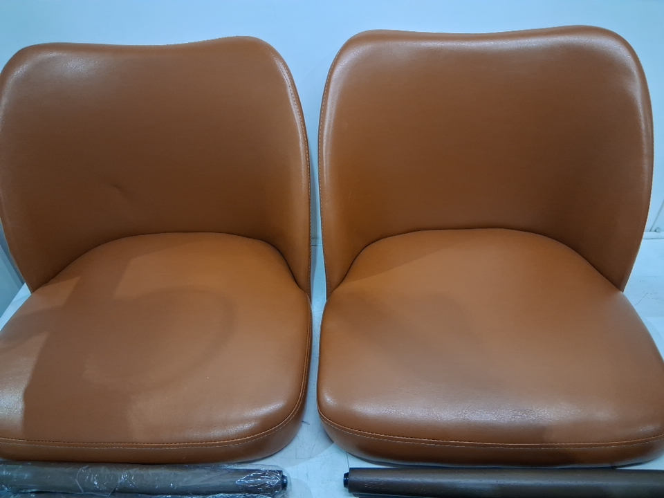 2PK COLAMY leather wood dining chairs - 18.5" x 20.3" x 29.7" - light brown (model: 3008)