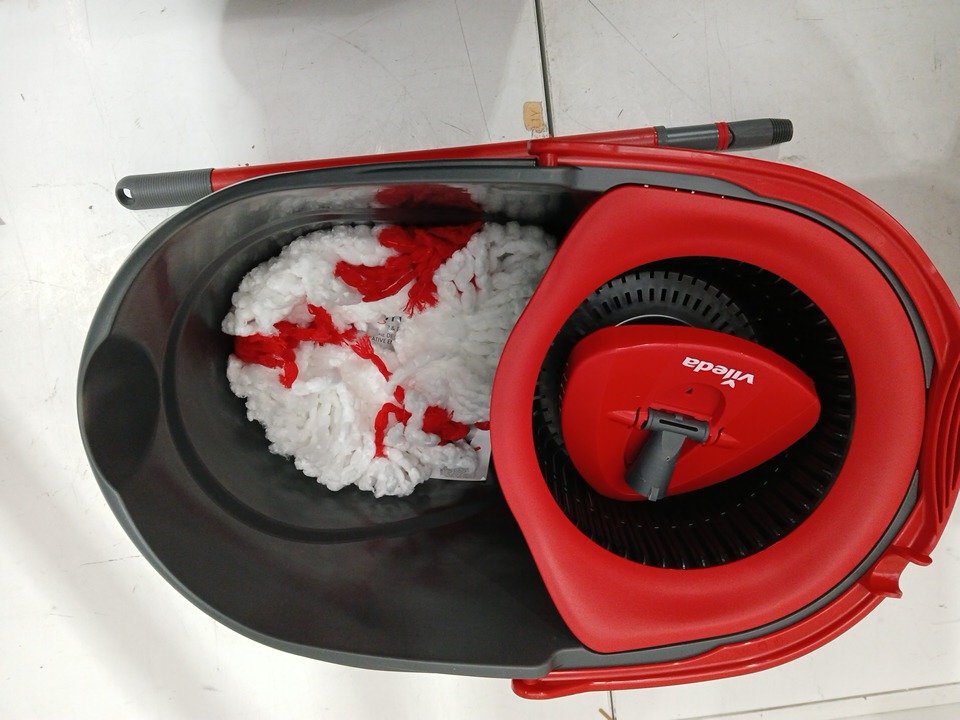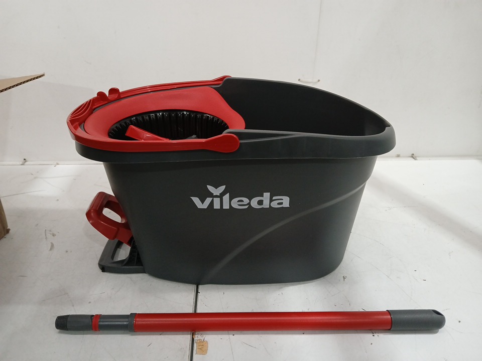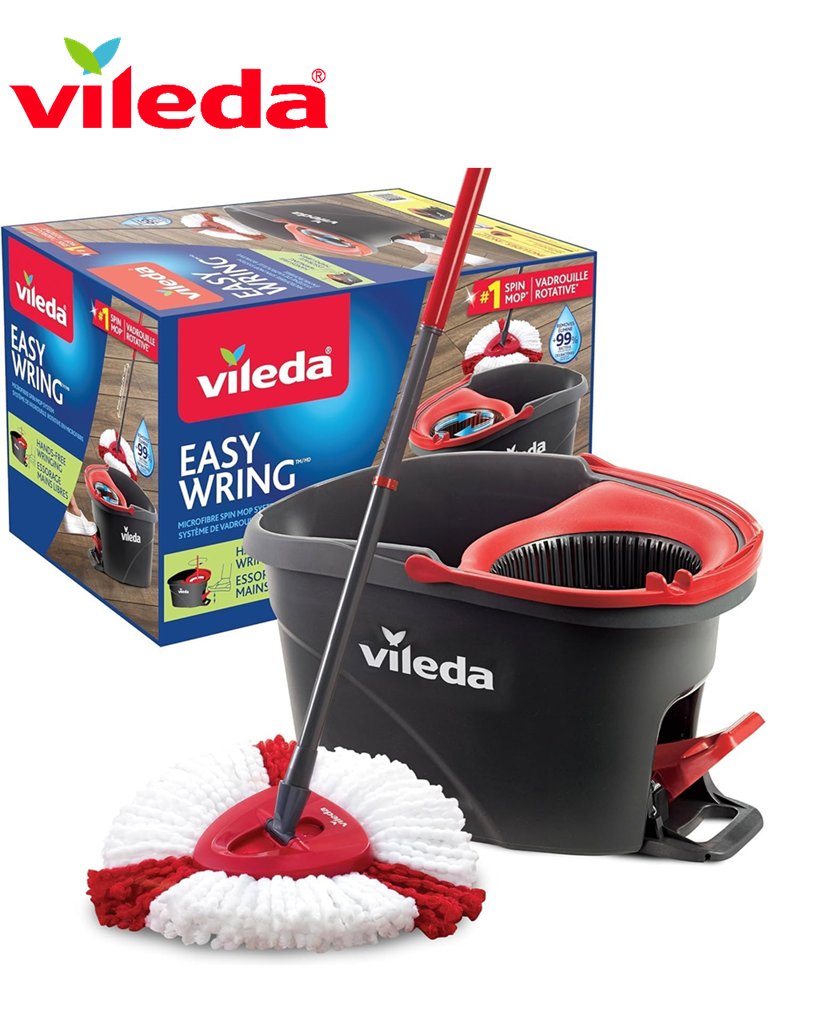 Vileda EasyWring Spin Mop Bucket Floor Cleaning System with Power Mop Head and extendable handle - red/grey (model: 172880/ 10683010609981)