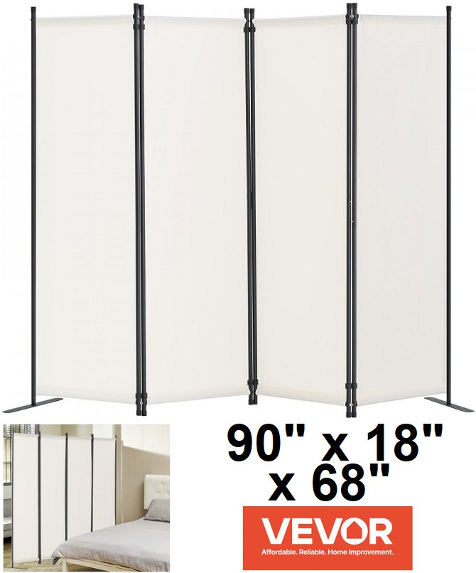 VEVOR 4-Panel Folding PrivacY Room Divider - 90" X 18" X 68" - WHITE/BLACK (MODEL: PFFSTGMS12)
