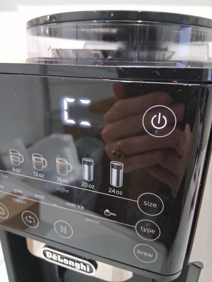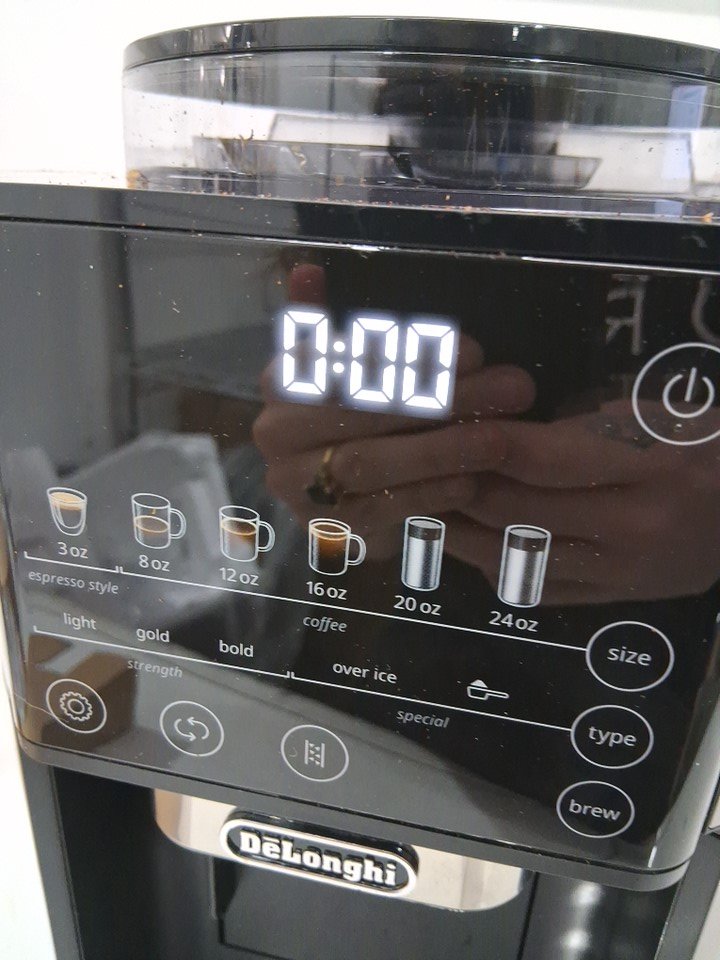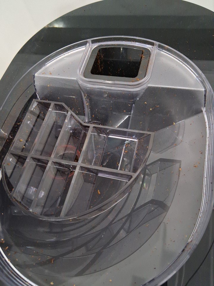 coffee grinds and residue in top. some minor scuffs from use and watermarks in pitcher.