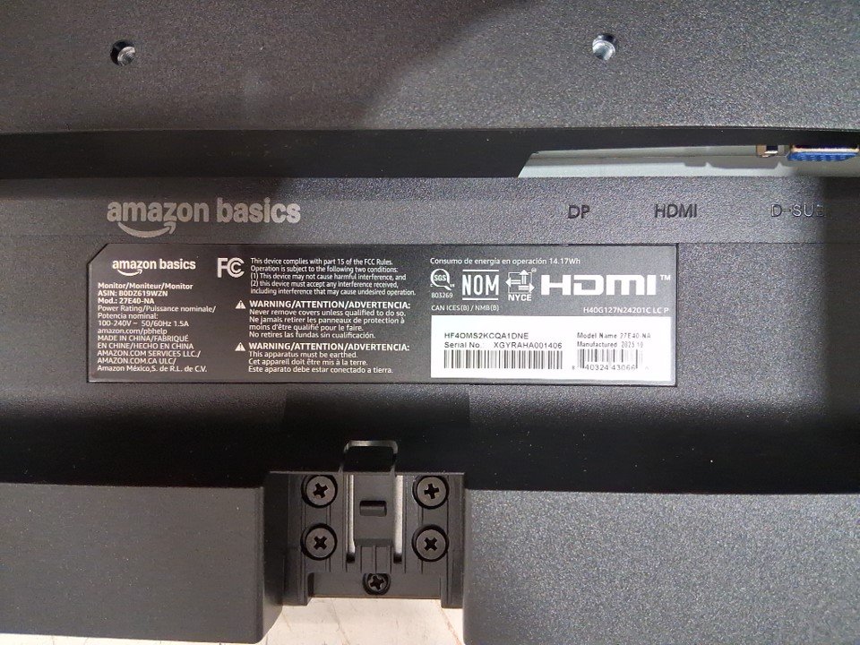 amazon basics 27" Monitor, FHD 1080P, Max 120Hz, VESA Compatible with Built-in Speakers - (model: c27m2020na)