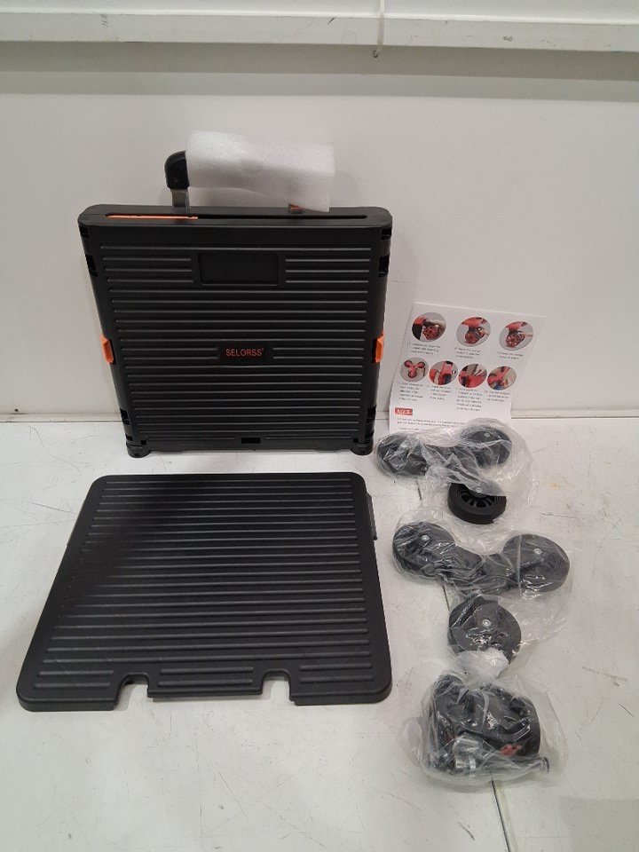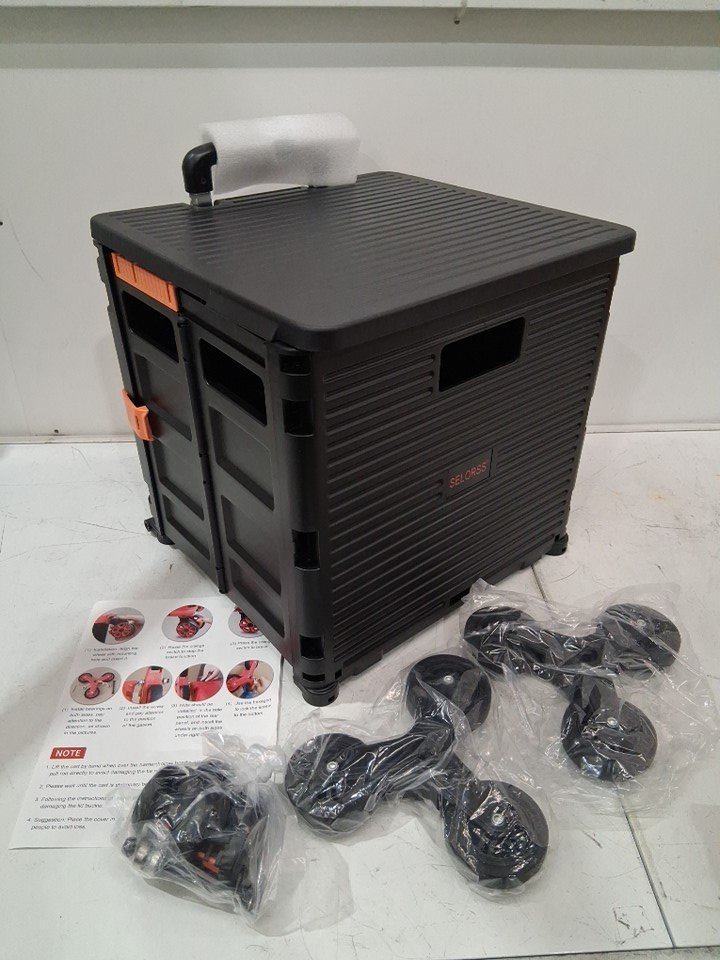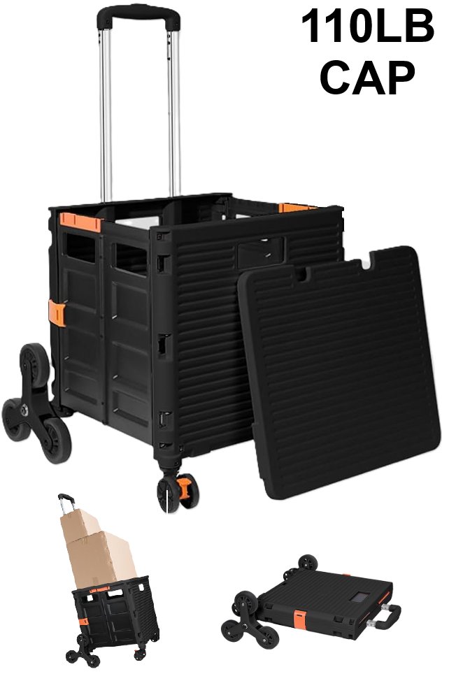 SELORSS Foldable Collapsible Rolling Utility Cart Crate with Stair Climbing Wheels - 110lb load - black/orange