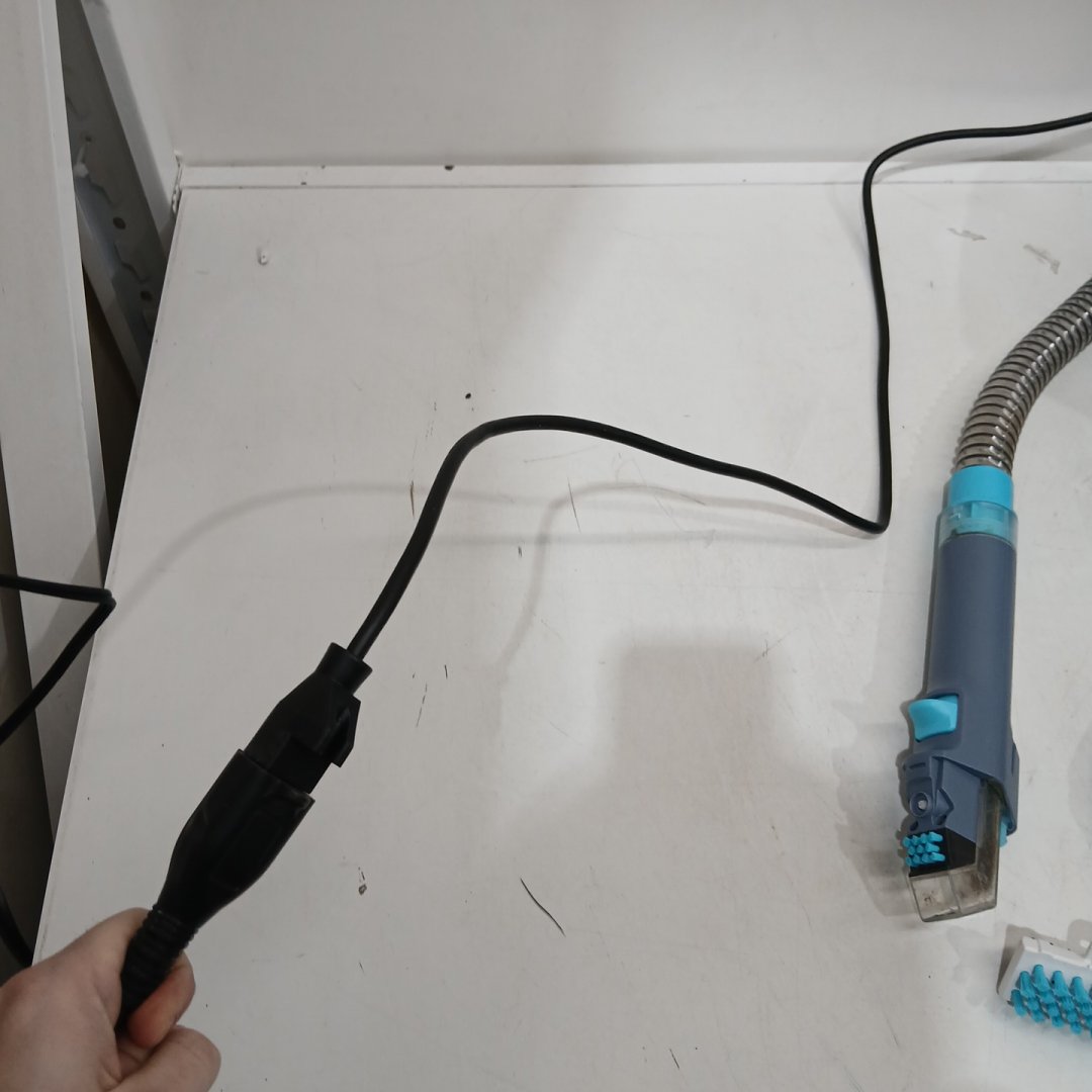 item has heavy signs of use, including debris/dirt within unit - scuffs present on item - cleaning solution half used and small leak. Tested for power.