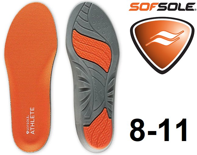 women's sofsole athlete performance insoles gel heel and arch support - size 8-11 - orange