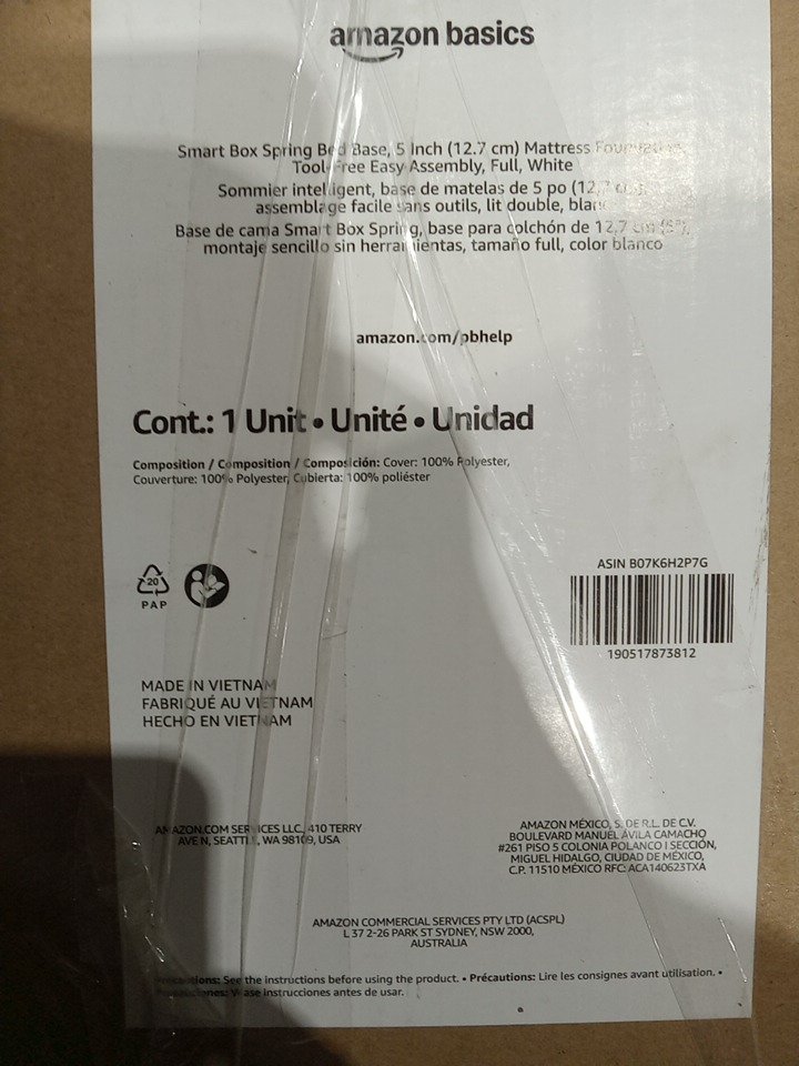 SMART BOX SPRING BED BASE MATTRESS FOUNDATION - 74" X 53" X 5" - FULL - OFF-WHITE (MODEL: b07k6h2p7g)