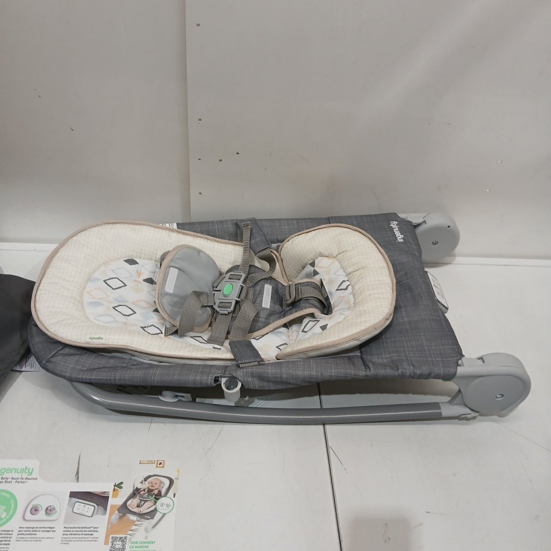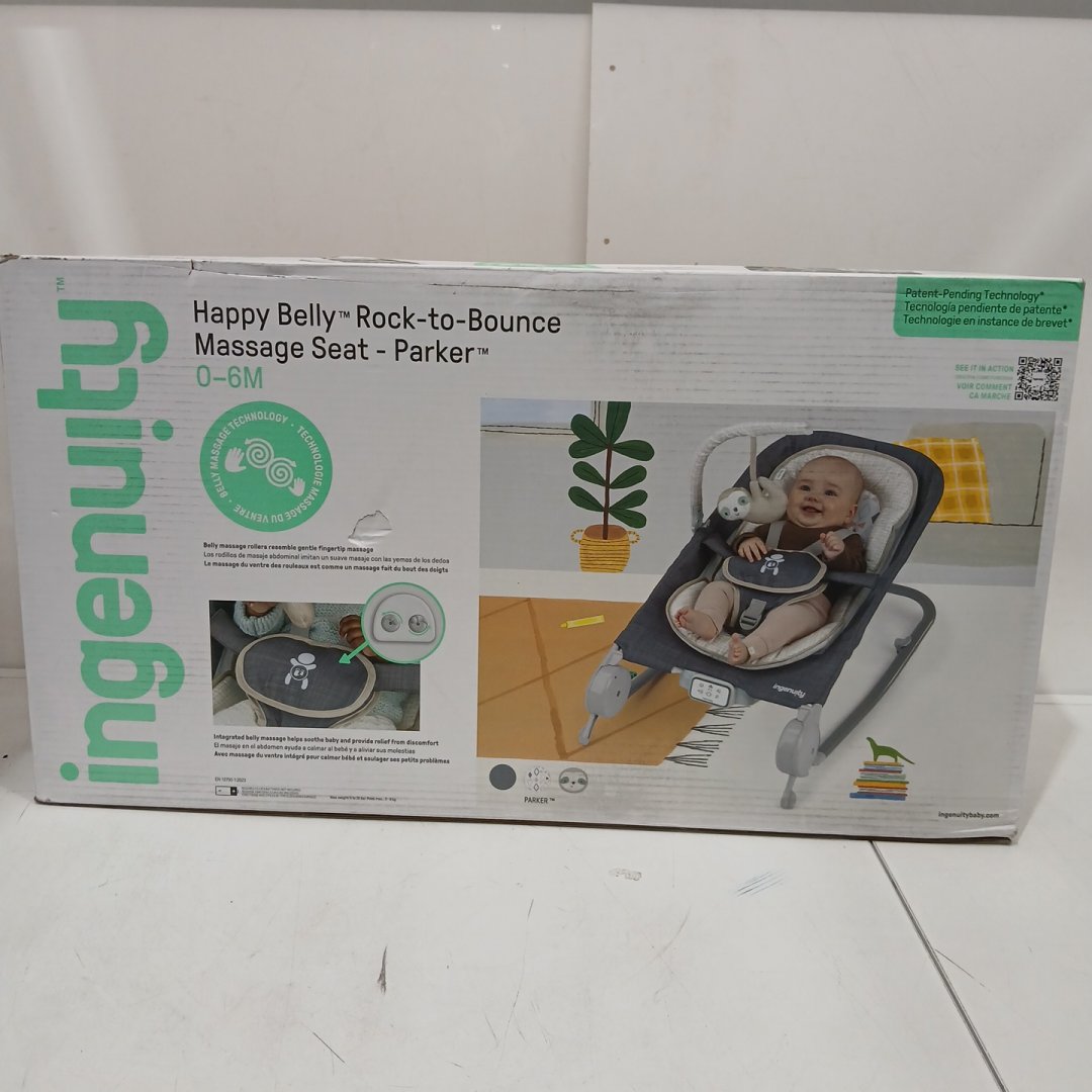 Ingenuity Happy Belly Rock-to-Bounce Massage Seat - 0 TO 6 MONTHS - PARKER/GREY