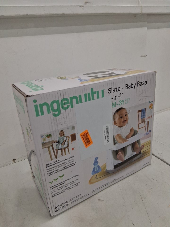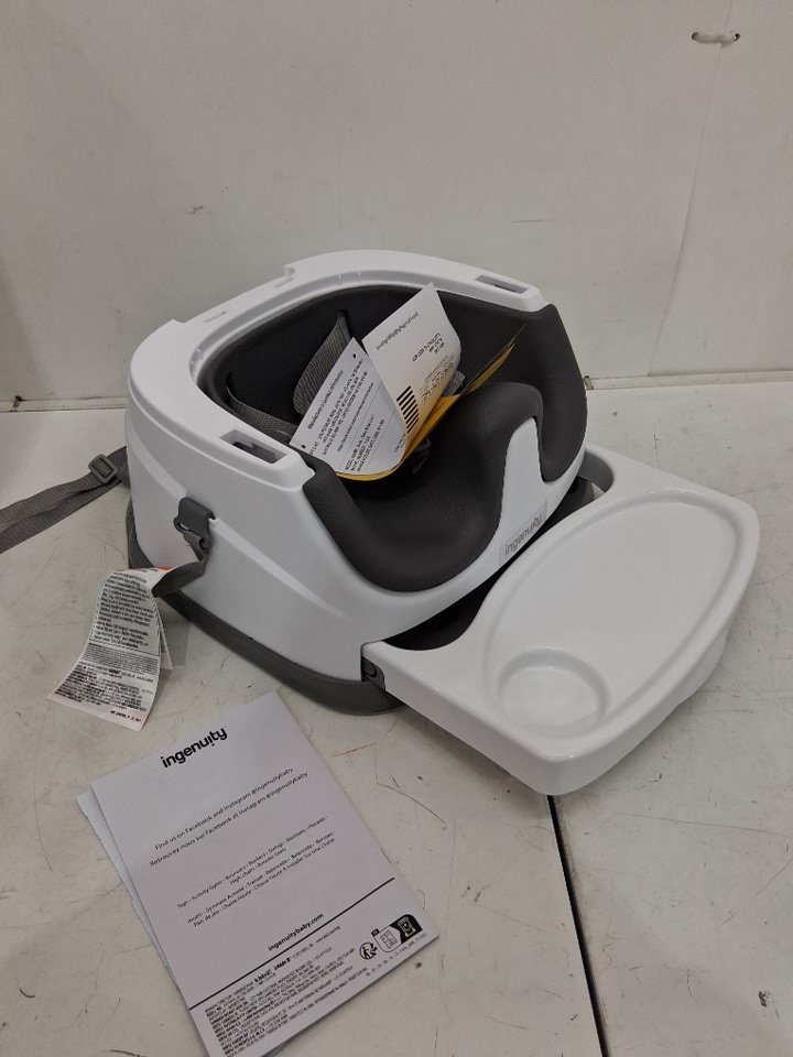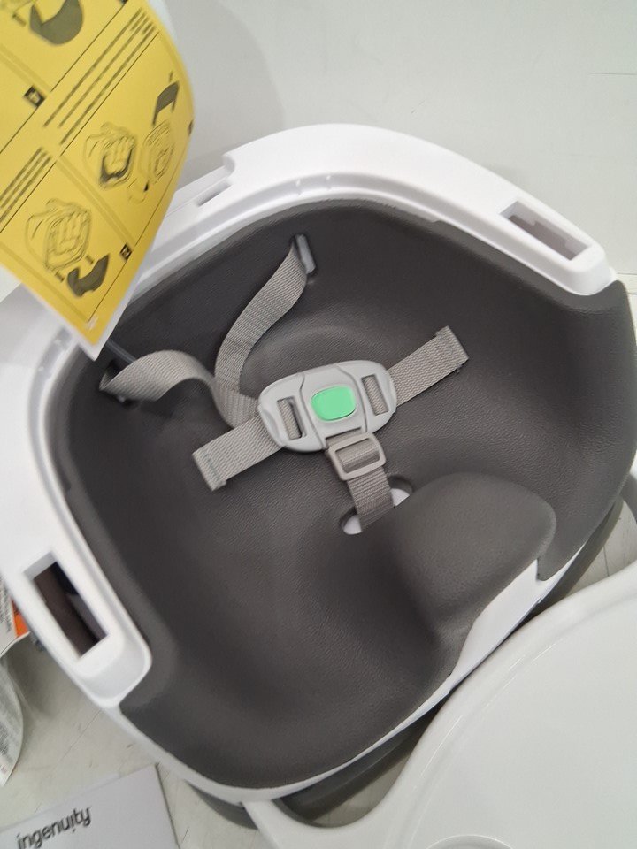 INGENUITY BABY BASE 2-IN-1 BOOSTER SEAT WITH FOOD & DRINK TRAY - 50LBS CAPACITY - WHITE/SLATE GREY - (MODEL: 11576)