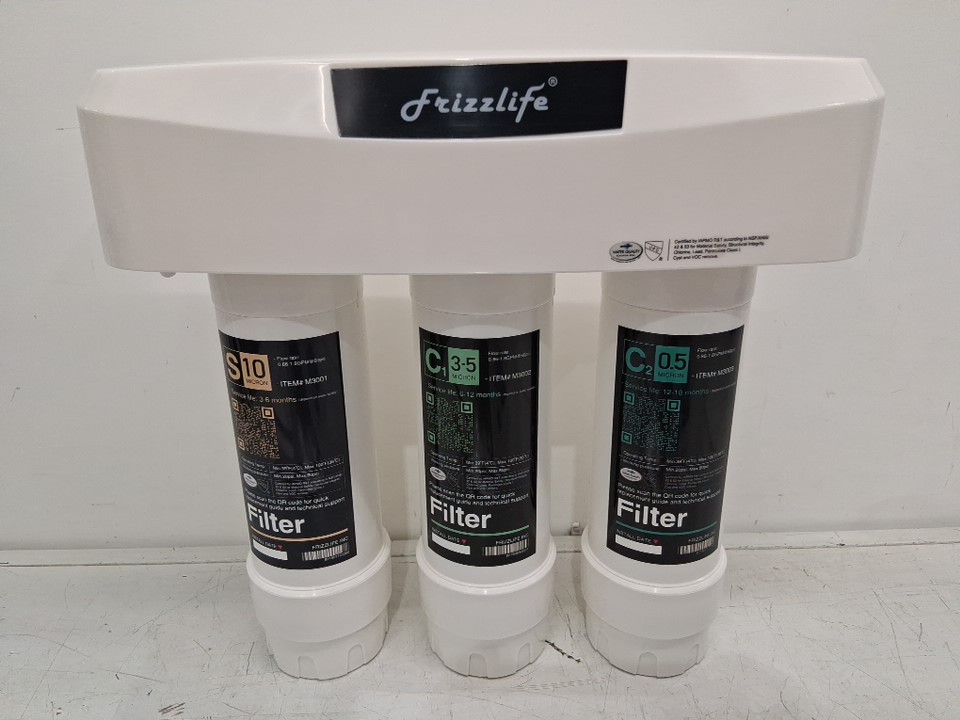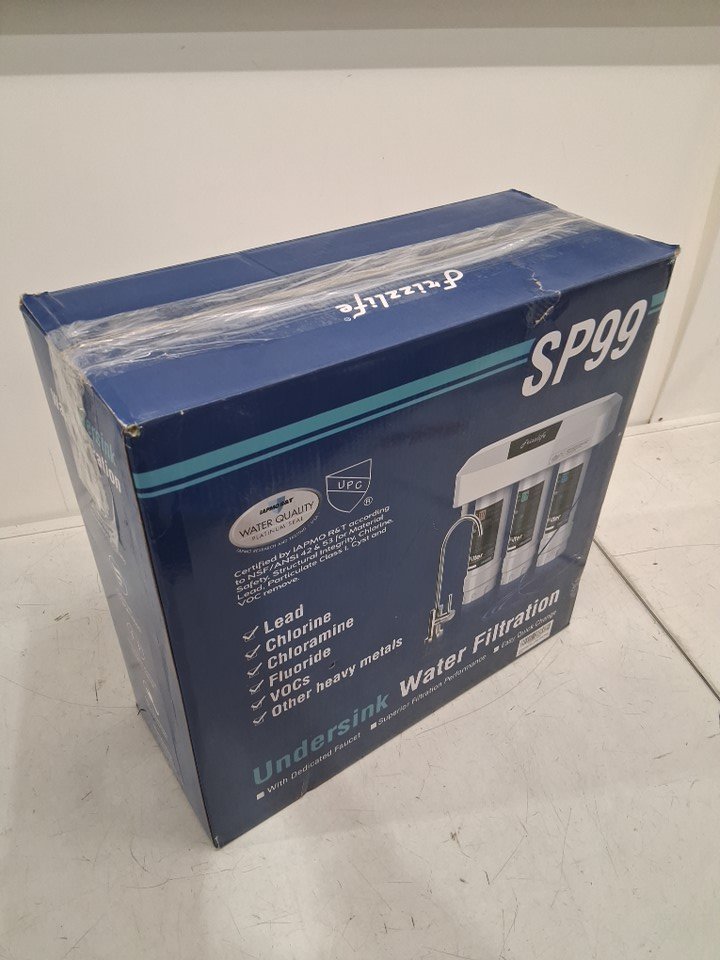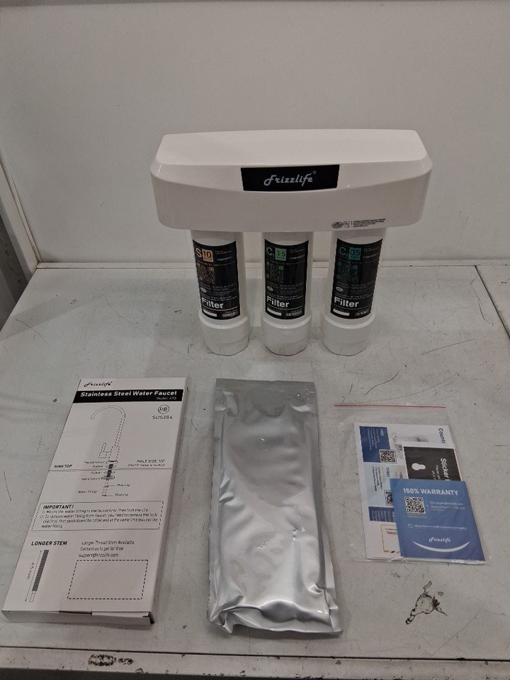 Frizzlife Under Sink 3-Stage Water Filter System with Brushed Nickel Faucet - 1.4 GPM @60 PSI - White - (Model: SP99)
