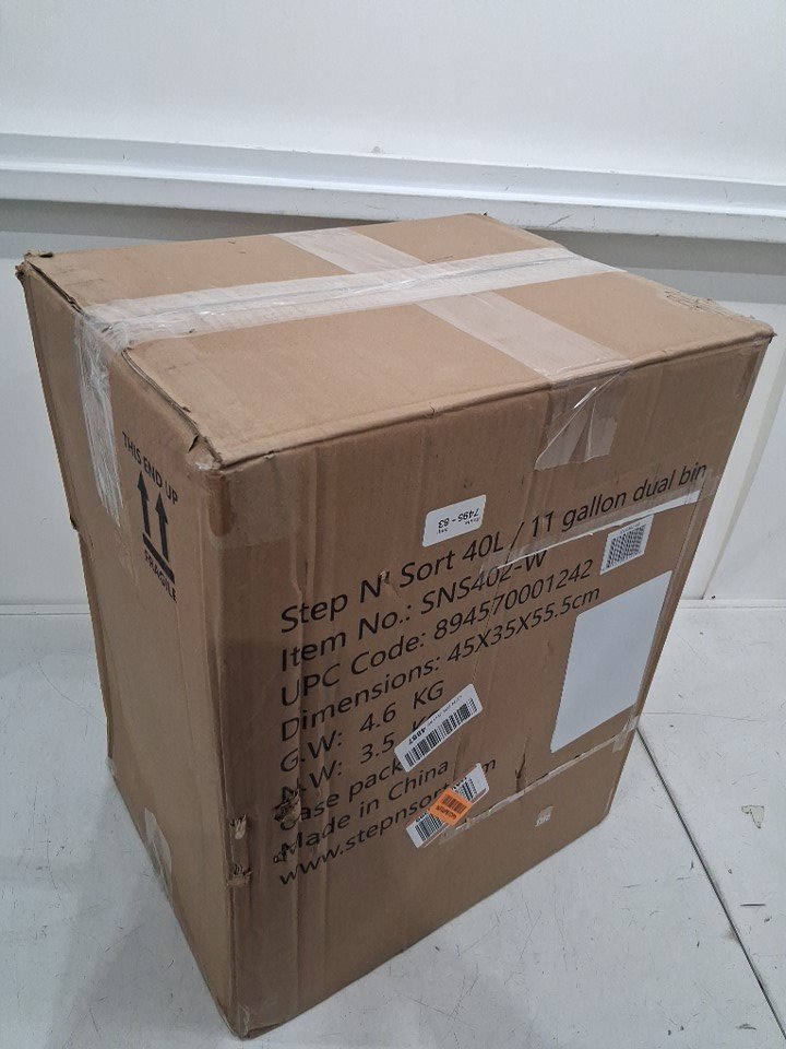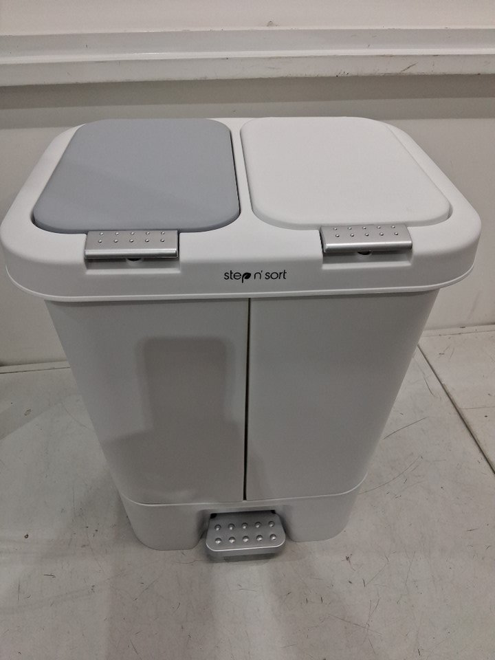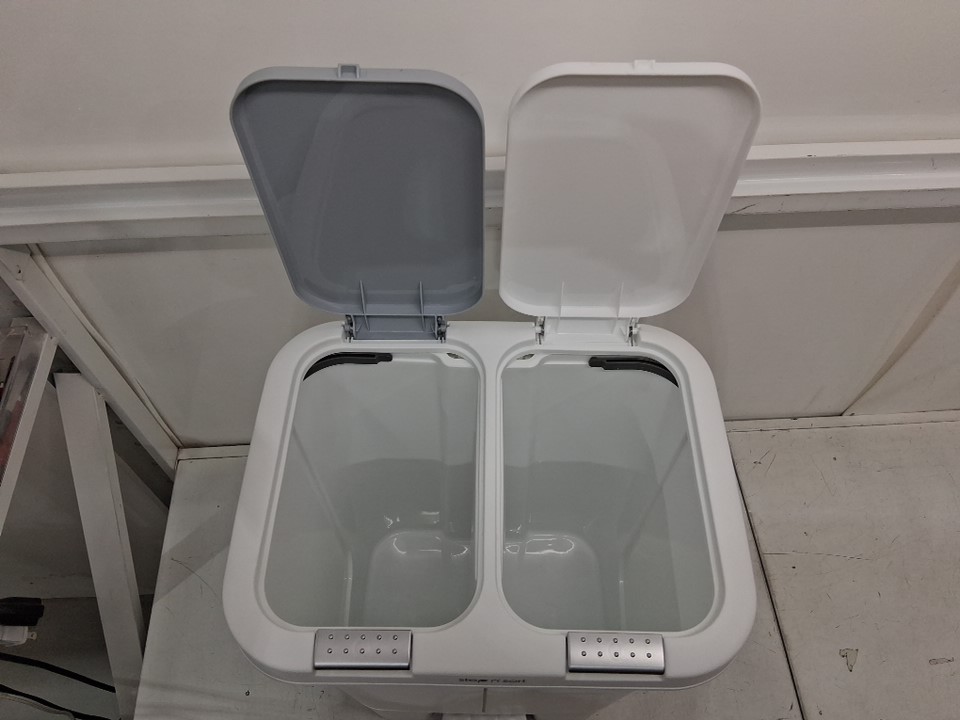 Step N' Sort 40L Dual Trash and Recycling Bin with Spring Top & STEP PEDAL - WHITE (MODEL: SNS402-W)