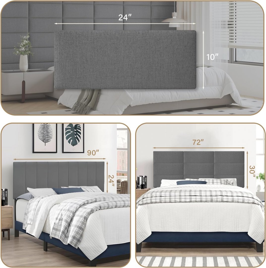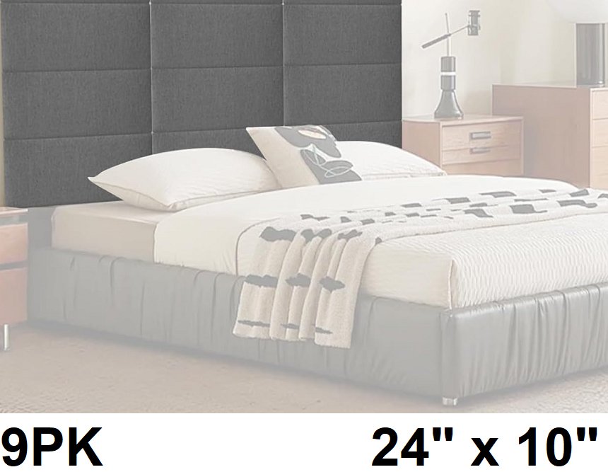 9PK Upholstered Peel and Stick Wall Mounted Headboard - 10” x 24 - Grey
