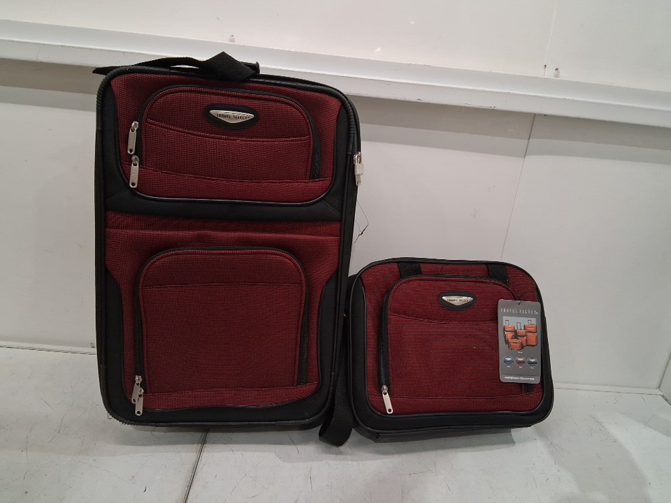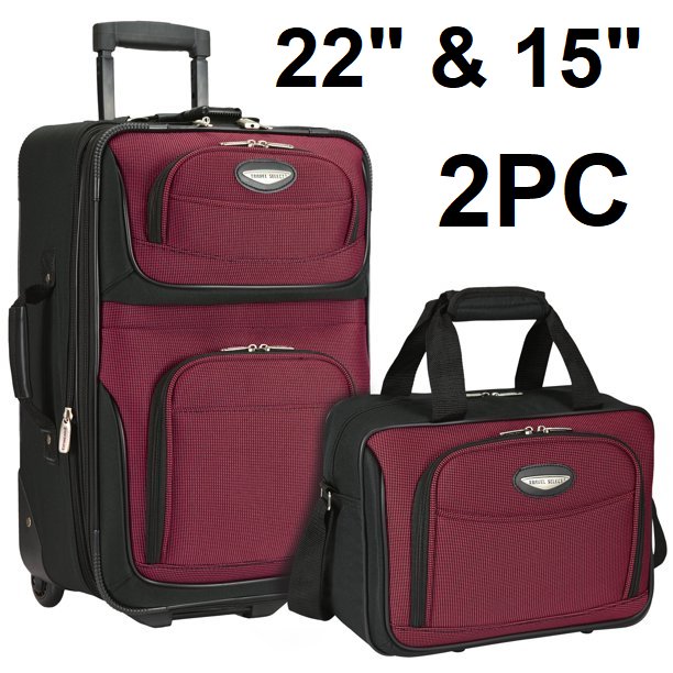 2PC TRAVEL SELECT ASMTERDAM COLLECTION Expandable Rolling Upright Soft Side Luggage Suitcase with Matching Tote Bag Travel Set - 22" & 15" - BURGUNDY RED (MODEL: TS6902R)
