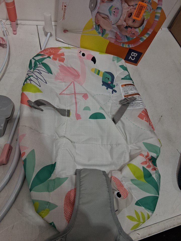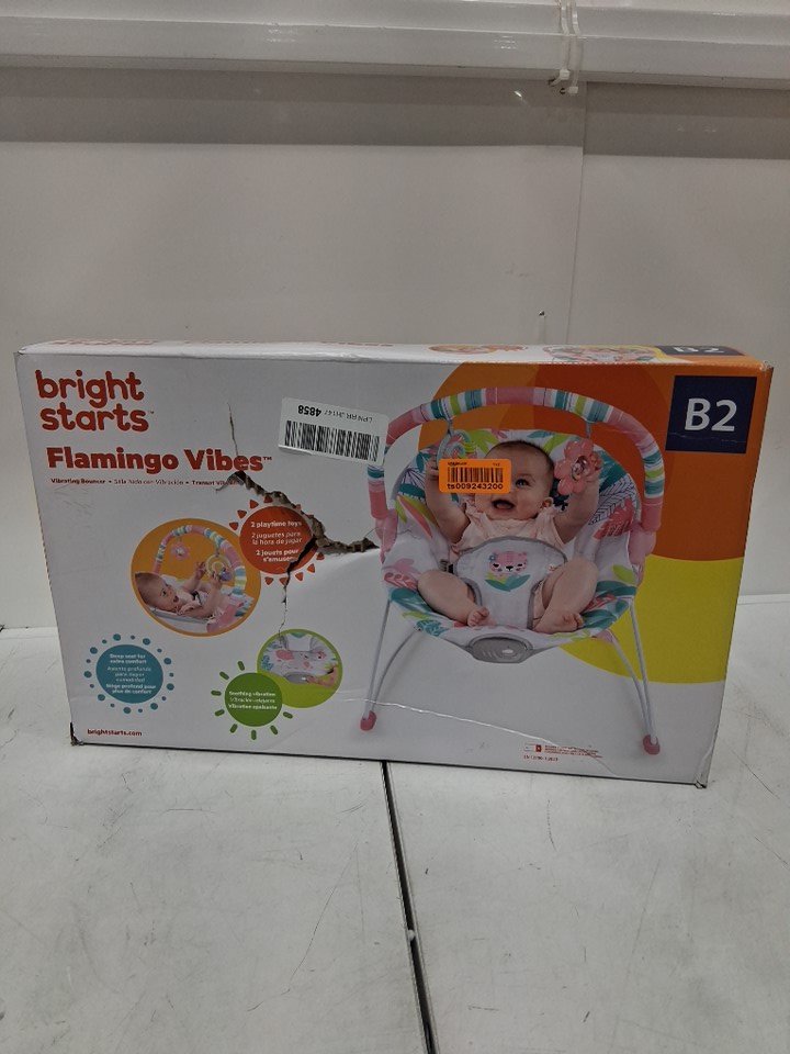 BRIGHT STARTS 3-POINT HARNESS VIBRATING BABY BOUNCER WITH TOY BAR - FLAMINGO VIBES (MODEL: 12228-ES)