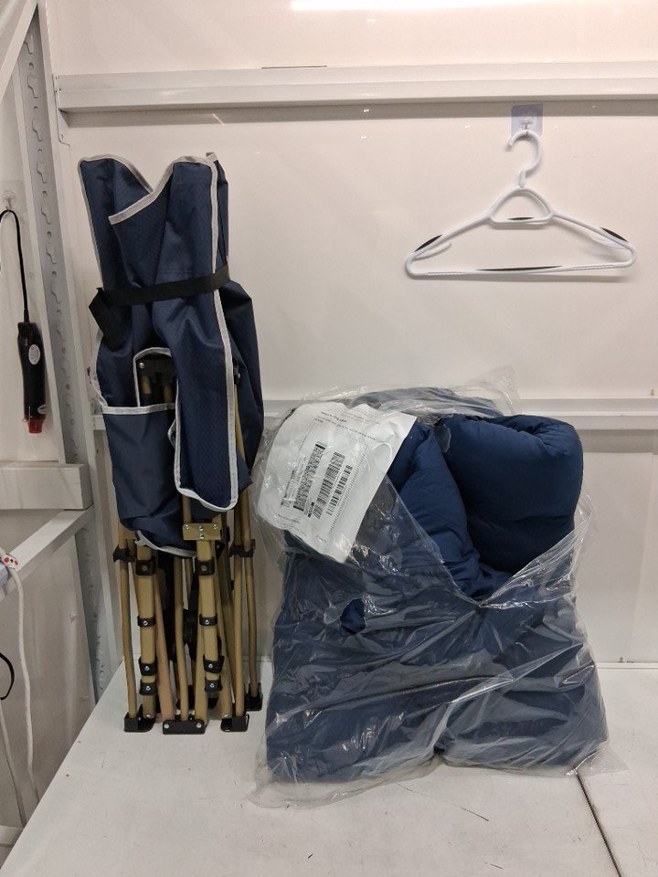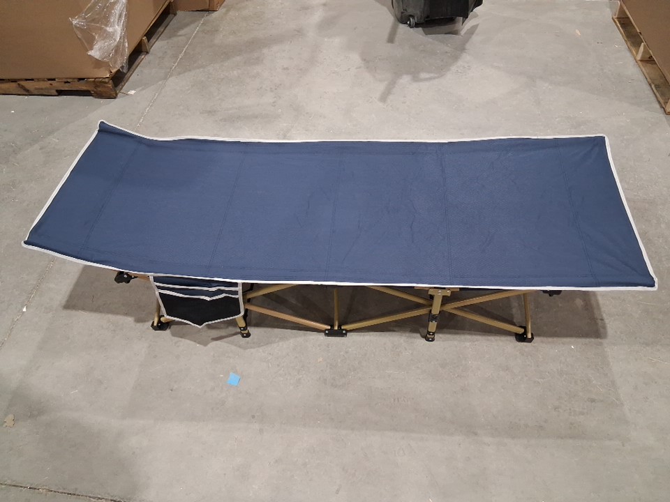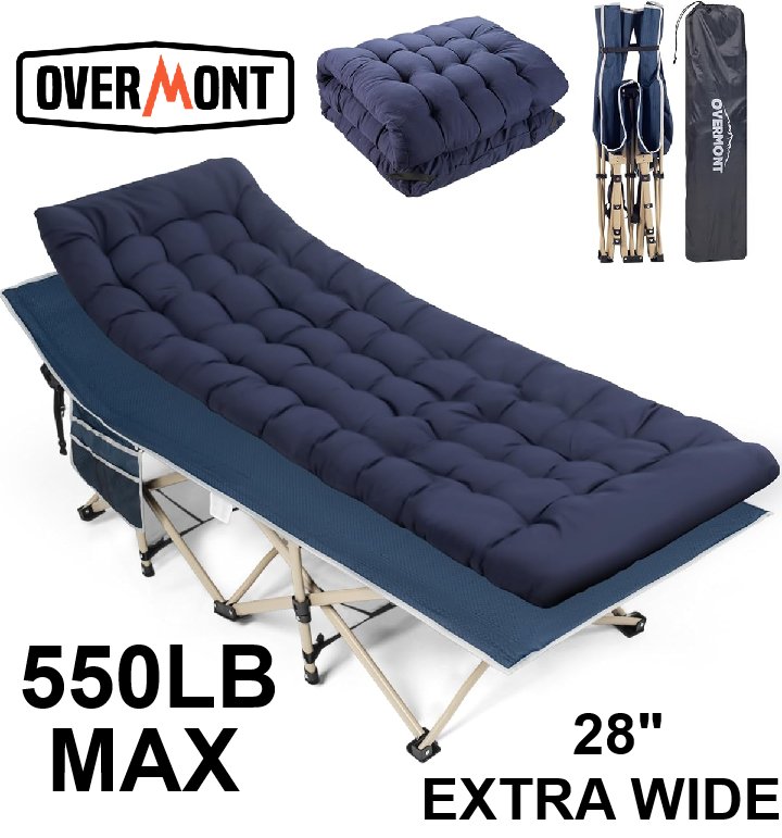 OVERMONT Oversized Extra Wide Folding Camping Bed Cot - 75" x 28" x 12" - 550lb cap - blue (model: ‎OM-Camp Bed-with Pad-Blue)