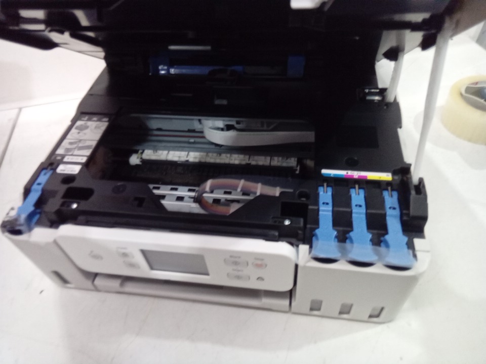 note that there is ink that leaked on the printer - see photos please. missing the cord, can not test.