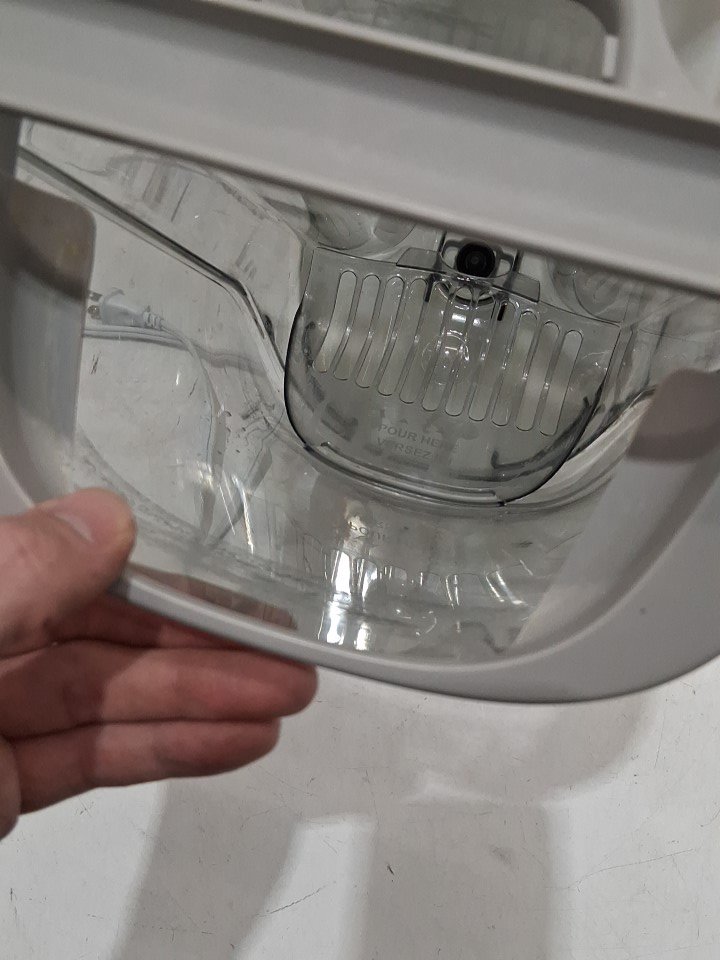 **Tested for power.** Item has some debris build-up, wear on the filter, markings in the reservoir, slight bend in the plug from previous use, see photos.
