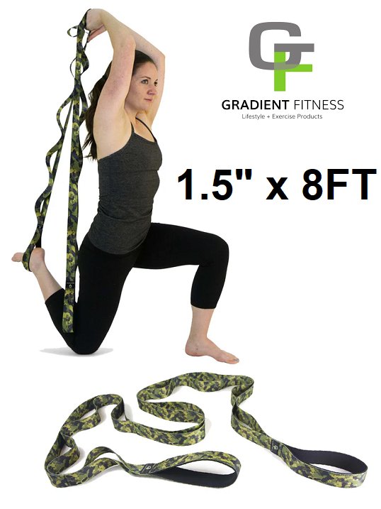 Gradient Fitness multi loop Stretching Strap with padded handles - 1.5" x 8ft - camouflage