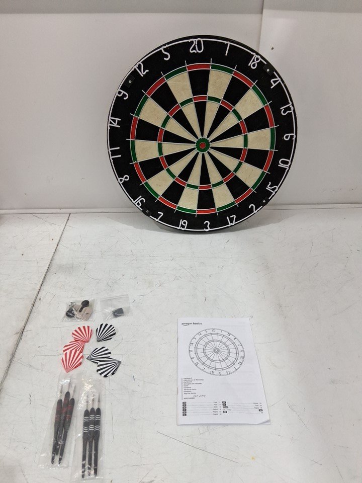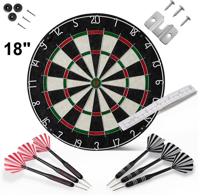 amazon basics regulation size dartboard set - 6 darts included - 18" - (model: B0DZ24NR85)