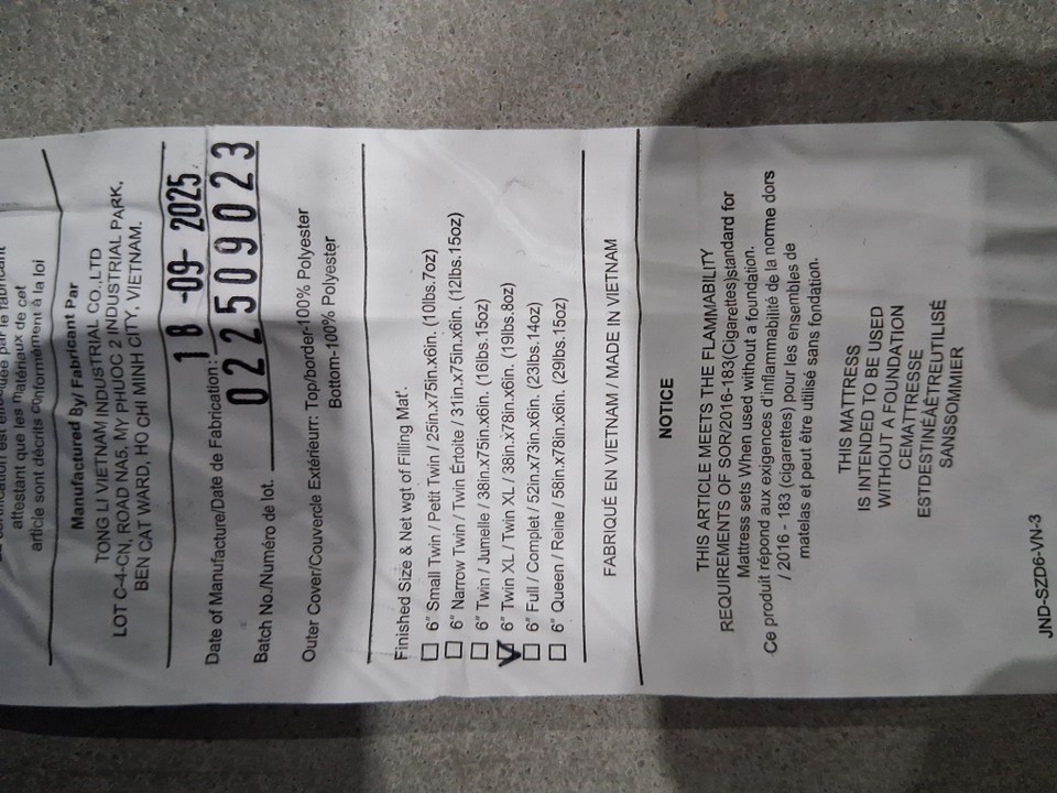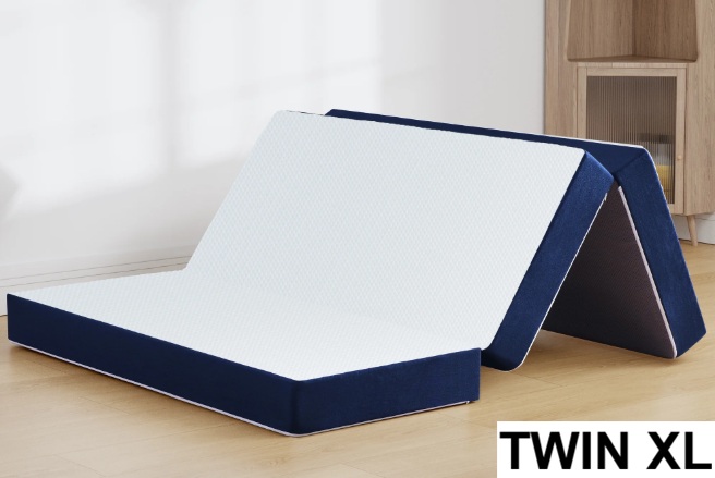 6" TRI FOLDING MEMORY FOAM MATTRESS WITH NON SLIP BOTTOM- TWIN XL - 78"X 38"X 6" - WHITE