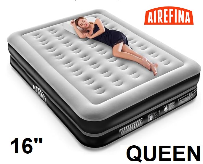 Airefina Deluxe Queen Air Mattress with Built-in Pump - 16" - grey