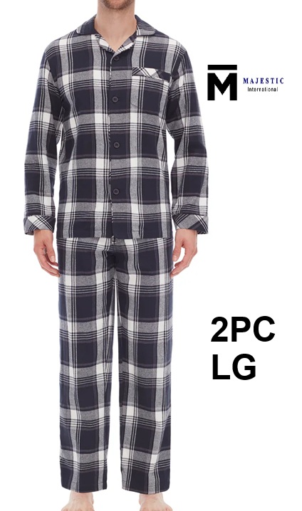 2pc men's majestic international plaid pajama set - large - navy (style:1930028)