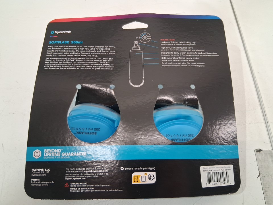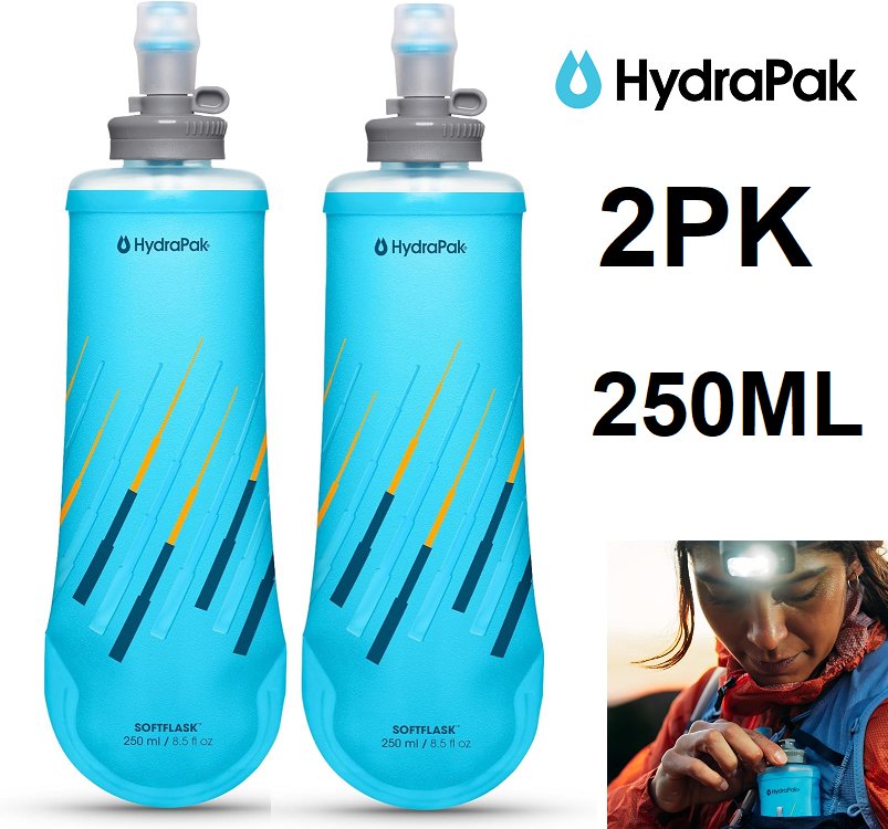 2pk hydrapak softflask Collapsible bpa-free Nutrition Flask - 250ml each - blue (model: B370HP)