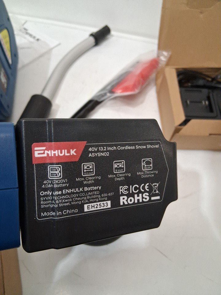 enhulk cordless electric snow shovel/blower WITH two RECHARCHABLE BATTERIES & DUAL QUICK CHARGER - 26.5FT throw distance MAX - 13.2"- 40V - blue/black (model: ASYSN02)