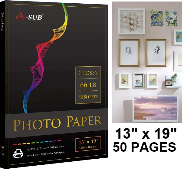 50 PAGES A-SUB Premium single Sided Photo Paper - Luster - 13" x 19", 66lb - glossy WHITE