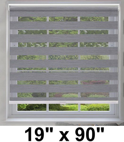 agesisi zebra window blinds with valance cover cordless roller shades for french door light filtering dual layer blinds - 19" x 90" - light grey